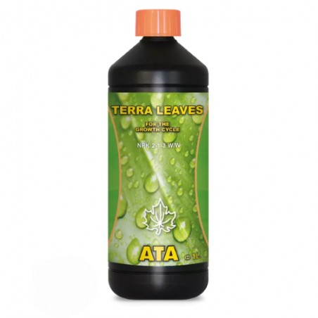 Terra Leaves de Atami es un fertilizante líquido completo para la fase de crecimiento, formulado con nitrógeno, fósforo y potasio para promover un desarrollo vegetativo fuerte, hojas verdes y una estructura resistente. Ideal para preparar tus plantas para una floración abundante y saludable.