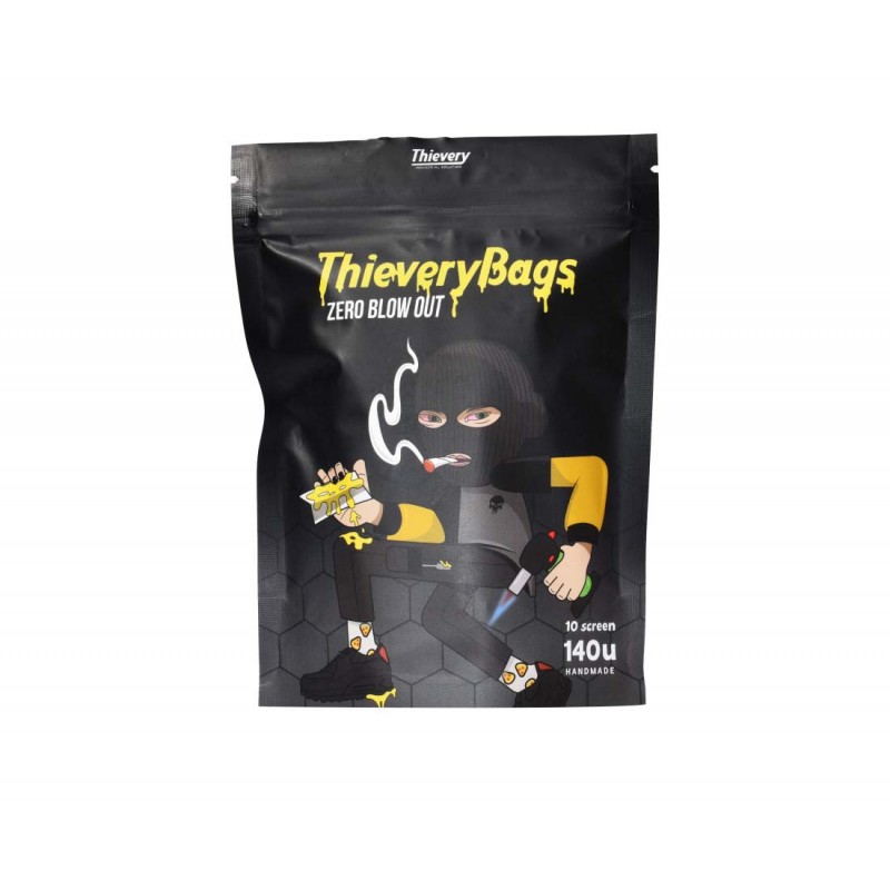 Thievery Bags son mallas de extracción sin solventes para cannabis, ideales para usuarios casuales y profesionales. Cada paquete incluye 10 bolsas sin costuras laterales de 7x11 cm, diseñadas para prensas domésticas y profesionales, con retorno óptimo de hasta 15 g. La malla de 90 μm evita la filtración de material vegetal, asegurando un retorno limpio.