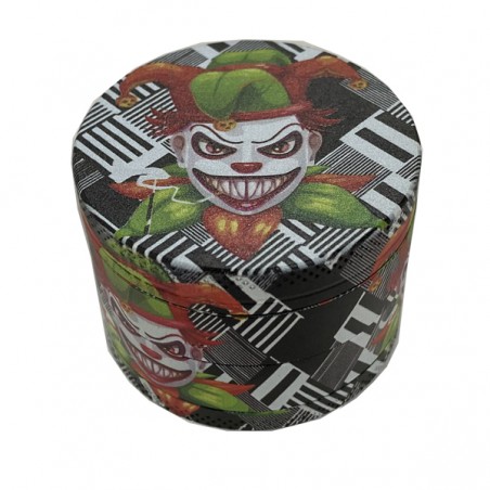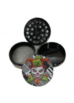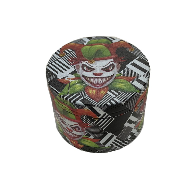El moledor de metal con diseño de Bufón es una pieza de gran durabilidad y atractivo visual. Fabricado con un metal resistente, presenta un diseño en todo el producto que lo hacen único. Con un elegante acabado negro y cuatro partes, su parte inferior permite almacenar kief, añadiendo funcionalidad a su atractivo diseño.