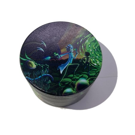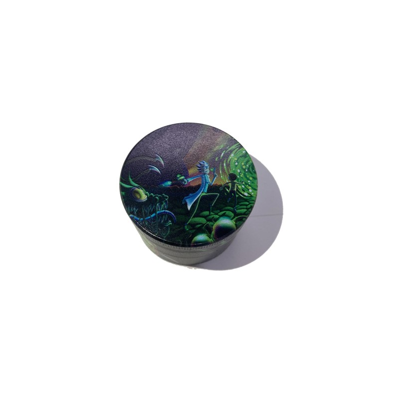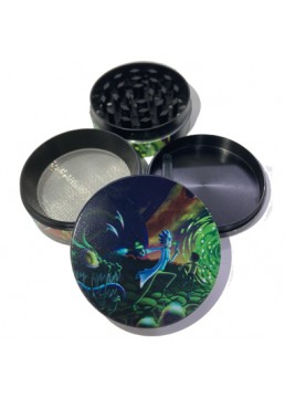 El moledor Rick & Morty es una pieza única con un diseño elegante basado en el famoso dibujo animado. Con cuatro partes y capacidad para almacenar kief en su parte inferior, combina estilo y funcionalidad de manera excepcional.