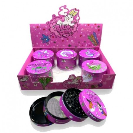 Moledor Metálico 4 Partes “Baked Bunny Edition” 🐇💨 combina una estética encantadora con funcionalidad. Su diseño rosa metálico, inspirado en Baked Bunny, lo convierte en una herramienta indispensable para quienes buscan calidad, durabilidad y estilo en cada molienda.
