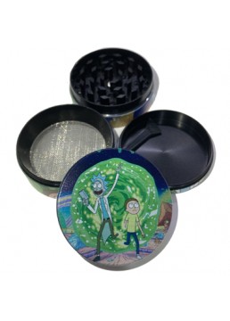 El moledor Rick & Morty es una pieza única con un diseño elegante basado en el famoso dibujo animado. Con cuatro partes y capacidad para almacenar kief en su parte inferior, combina estilo y funcionalidad de manera excepcional.